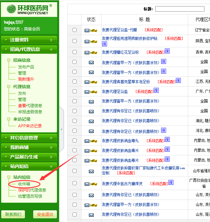 第二步:點(diǎn)擊管理后臺左側(cè)操作面板的“站內(nèi)短信”下的“收件箱”進(jìn)行查看