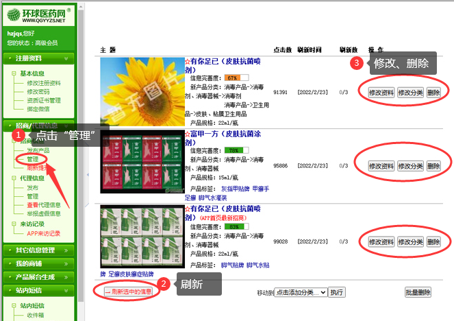 發(fā)布的產(chǎn)品怎么管理(刷新/修改/刪除)