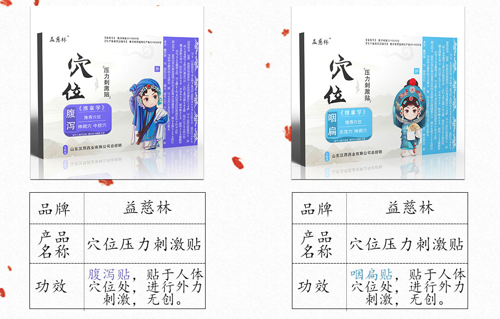 骨科產(chǎn)品有: 磁療貼、理療貼、冷敷貼,婦科產(chǎn)品有:暖宮貼、乳腺貼、痛經(jīng)貼,兒科產(chǎn)品有:感冒貼、止咳貼、腹瀉貼、厭食貼、咽扁貼、嬰幼兒腹瀉貼、退熱貼