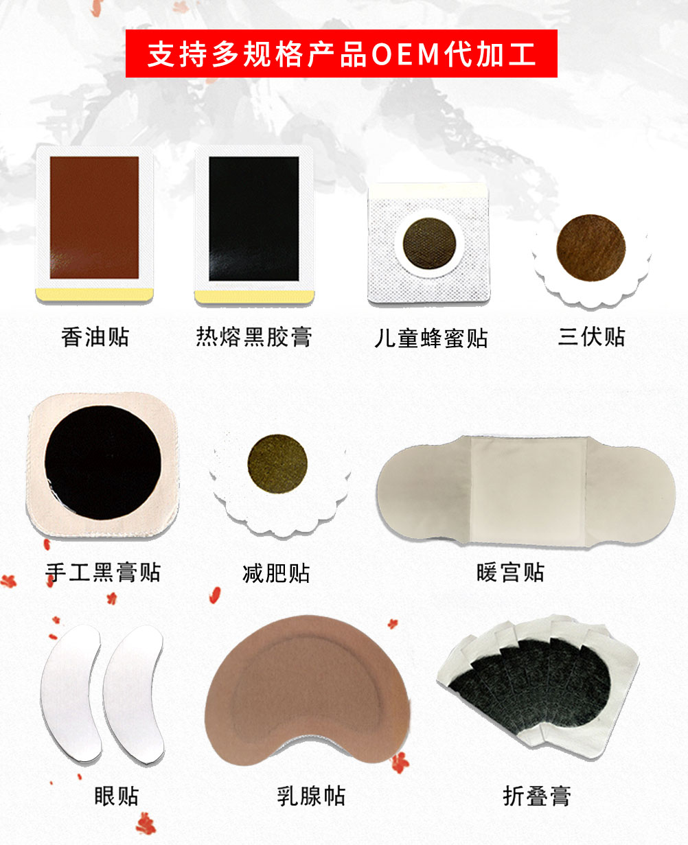 主營產(chǎn)品有:傳統(tǒng)手工老膏藥 巴布貼膏藥 冷敷凝膠 蜂蜜貼 兒童貼 藥泥貼 發(fā)熱包 水凝膠膏藥 熱熔膠膏藥 防疫物資 口罩 電極片 中醫(yī)透藥治療儀 源頭廠家 膏藥廠家、膏藥代工廠、膏藥貼牌