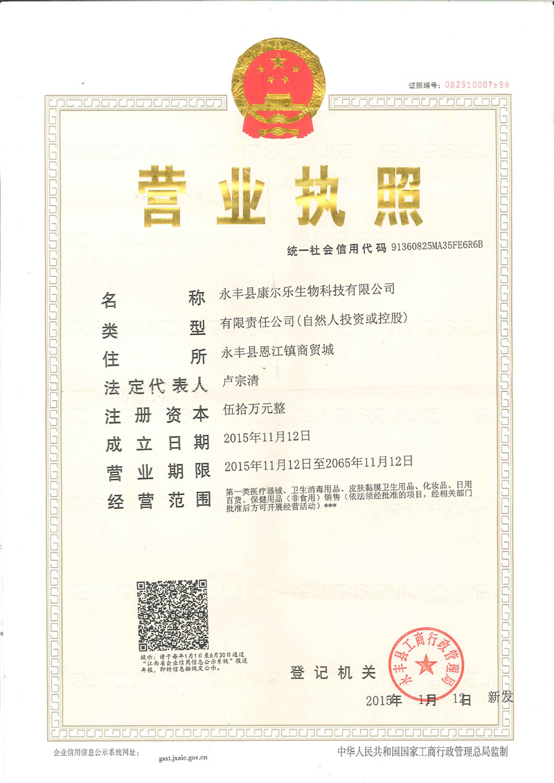 (江西)永豐縣康爾樂生物科技有限公司始建于2015年。公司位于山清水秀、人杰地靈的歐陽修故鄉(xiāng)--永豐 ,素有“藥業(yè)強(qiáng)縣”譽(yù)滿江南之美稱。我公司集生產(chǎn)、銷售于一體的企業(yè)。是以生產(chǎn)、銷售為一體的多元化發(fā)展的高新企業(yè)。我們始終堅(jiān)持“以誠信為基礎(chǔ),以質(zhì)量為生存,以客戶為中心,以雙贏為目的”的經(jīng)營合作理念。公司擁有的化工專家及執(zhí)業(yè)藥師,擁有先進(jìn)的生產(chǎn)工藝及設(shè)備,確保每1支產(chǎn)品的質(zhì)量。 本公司致力于研發(fā)新型外用藥及傳統(tǒng)等相關(guān)健康產(chǎn)品,并且對外加工、貼牌生產(chǎn)。公司擁有膏劑、貼劑、外用噴劑、消毒產(chǎn)品10多個品種。并與全國客戶建立了良好的長期合作伙伴關(guān)系。