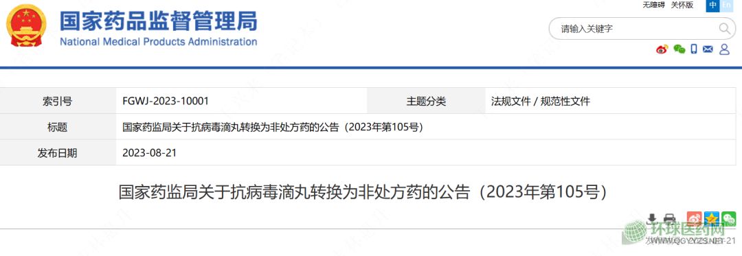 2023年08月21日,國家藥監(jiān)局發(fā)布了關(guān)于 抗病毒 滴丸轉(zhuǎn)換為非 處方藥 的公告(2023年第105號(hào)),要求持有人…
