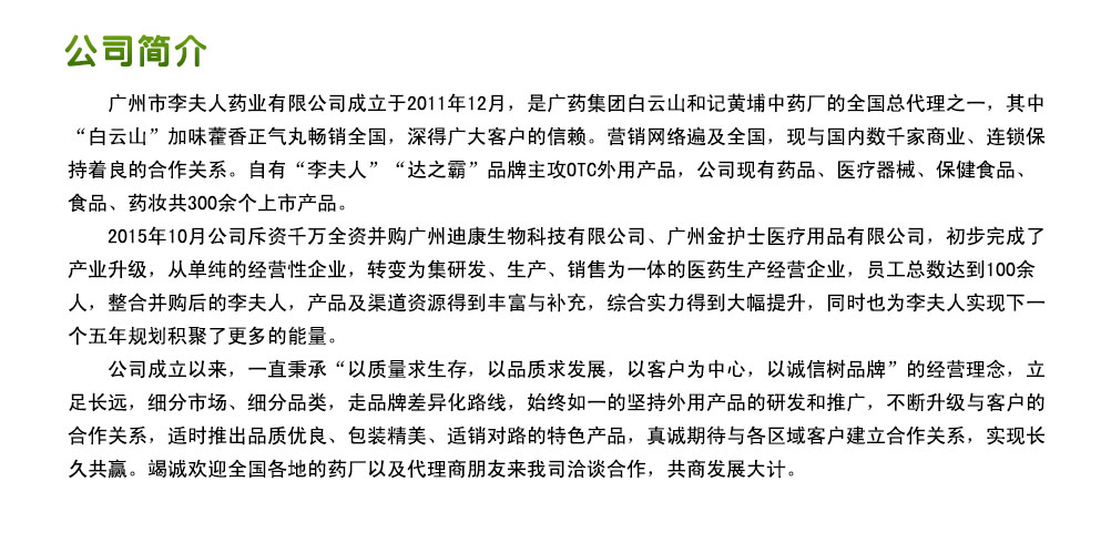 廣州市李夫人藥業(yè)有限公司迪康事業(yè)部