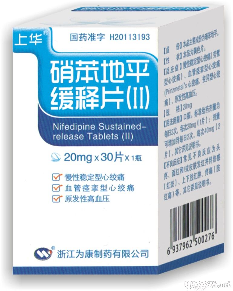 | 浙江為康制藥 | 硝苯地平緩釋片(II) | 20mg*30s*300盒 | 嚴(yán)格區(qū)保 |