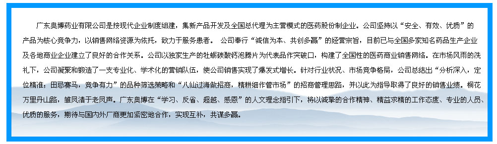 | 公司名稱:廣東奧博藥業(yè)有限公司 | |