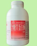 | 【成 份】 | 本品系胃蛋白酶用乳糖、葡萄糖或蔗糖稀釋制得。每1g中含蛋白酶活力不得少于120單位或1200單位 |