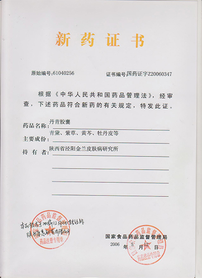 閆科列教授,出身中醫(yī)世家。1963年新疆參軍時被分配在天山腳下的部隊醫(yī)院,他用 良方配置的金蘭健膚膏、潔膚凈膏為部隊?wèi)?zhàn)士和地方老百姓醫(yī)好了很多皮膚頑疾,多次受到部隊首長的嘉獎。在他的帶領(lǐng)下,部隊醫(yī)院成立了皮膚病科研小組,以天山得天獨厚的中藥資源,使科研小組攻克了一個又一個醫(yī)學(xué)難題。改革開放后,閆教授成立了陜西省金蘭皮膚病研究所,根據(jù)國家星火計劃項目,成立牛皮癬科研小組,自1984年至1998年,經(jīng)過十多年的臨床研究,終于研制成功一種治療牛皮癬的純中藥制劑“丹青膠囊”,經(jīng)過國家權(quán)威專家論證,1998年正式申報國家臨床,經(jīng)由中國中醫(yī)藥研究院廣安門醫(yī)院,成都中醫(yī)藥大學(xué)附屬醫(yī)院,山東中醫(yī)藥大學(xué)附屬醫(yī)院,陜西省中醫(yī)藥研究院附屬醫(yī)院,西安交通大學(xué)第二附屬醫(yī)院長達(dá)十多年的臨床應(yīng)用,2008年獲得國家批準(zhǔn),取得國家新藥證書,并獲得國家發(fā)明專利。