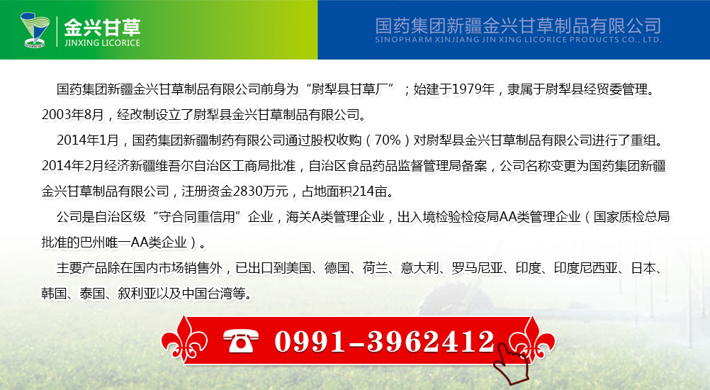 公司秉承“關(guān)愛生命,呵護(hù)健康”的企業(yè)理念,遵循“國(guó)藥品質(zhì),工業(yè)責(zé)任”的管理宗旨,承擔(dān)著中國(guó)醫(yī)藥工業(yè)有限公司民族藥產(chǎn)業(yè)基地的發(fā)展重任。 國(guó)藥集團(tuán)新疆制藥有限公司(原新疆制藥廠)成立于1958年。經(jīng)過近60年的發(fā)展,已形成了集中藥、民族藥、化學(xué)藥、原料藥生產(chǎn)為一體的綜合性國(guó)有獨(dú)資制藥工業(yè)企業(yè)。