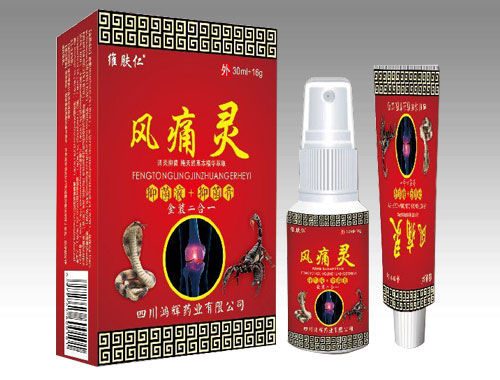 蜈蚣、蝎子、雪蓮、蜂毒、白花蛇、壁虎、黑螞蟻、雪上一枝蒿、生川烏、生草烏、伸筋草、三七、獨活、羌活、紅景天、生物磁石、馬錢子、冰片、薄荷腦、醋酸氯已定等。 |