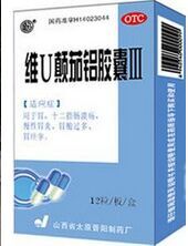 | 【成 份】 | 本品為復(fù)方制劑,每粒含維生素U(碘甲基蛋氨酸)50毫克,氫氧化鋁140毫克,顛茄浸膏10毫克。 |