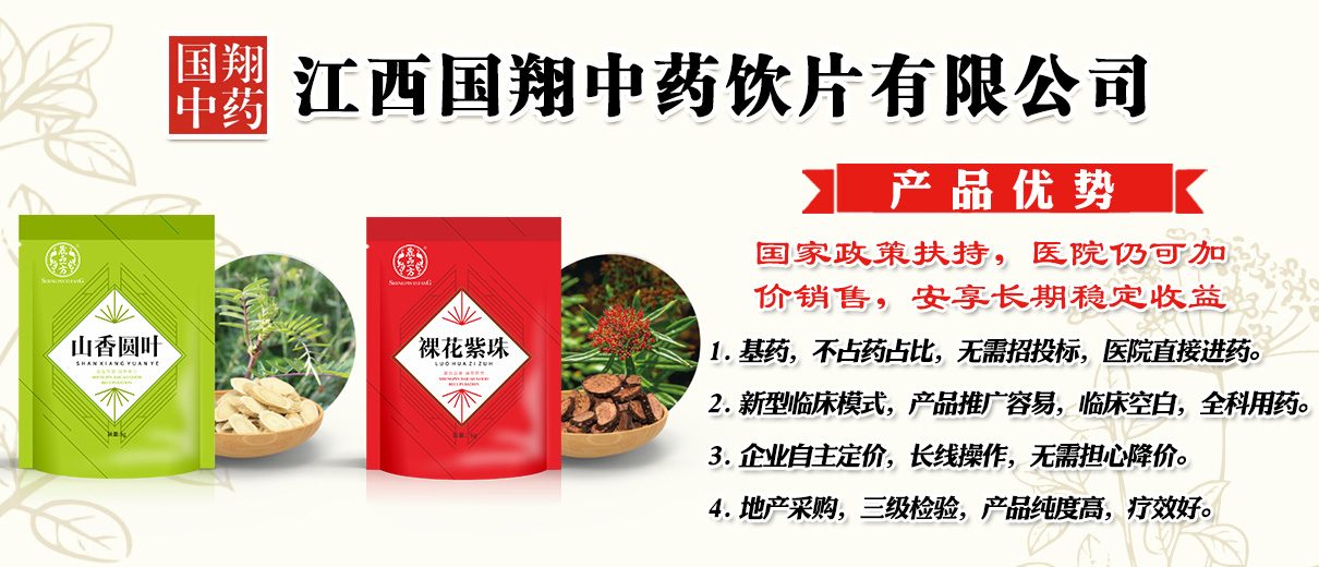 江西國翔中藥飲片有限公司位于藥都樟樹市,是一家集研發(fā)、生產(chǎn)、加工、銷售、服務(wù)于一體的現(xiàn)代化中藥飲片企業(yè)。公司產(chǎn)品涵蓋精致小包裝飲片、精制飲片、直接口服飲片、食品級組合代用茶等1000多個品規(guī),其中精致小包裝飲片,產(chǎn)品齊全,是該領(lǐng)域優(yōu)勢廠家之一,暢銷全國,眾多院線的優(yōu)選。