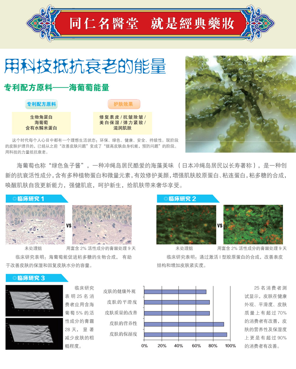 【功能主治】 運(yùn)用天然植物萃取及生化保濕成分,蘊(yùn)含海葡萄提取液,能深層潔凈毛孔,同時(shí)預(yù)防水流失,迅速讓您窒息的肌膚得到解放,打造天然水動(dòng)力——幫助溫和去除肌膚油脂污垢之余,肌膚保持水潤(rùn)暢通不干燥,倍感滋潤(rùn)柔嫩。