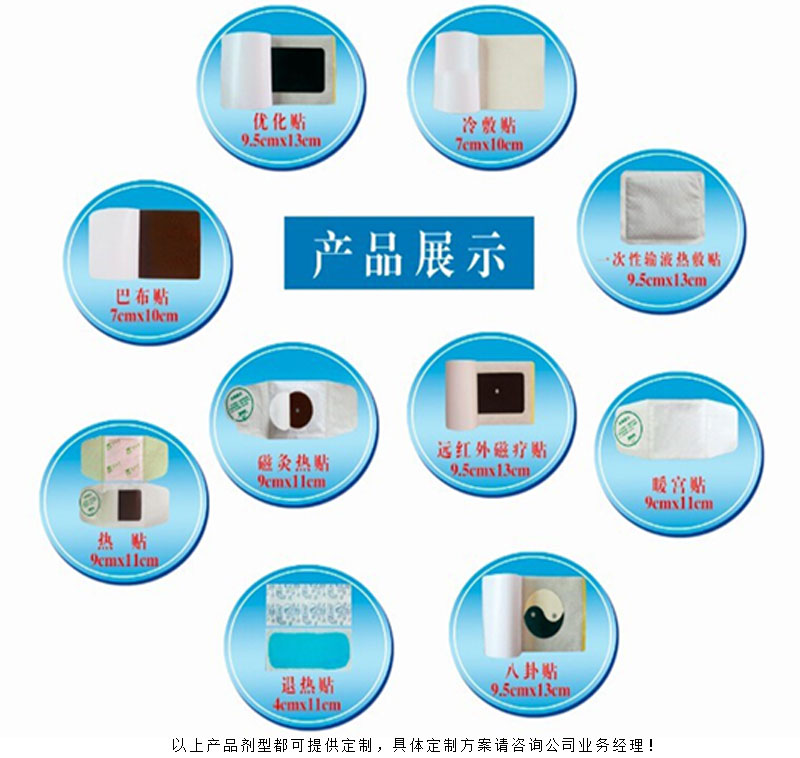 公司擁有穴位壓力刺激貼、醫(yī)用冷敷貼、退熱貼、冷敷凝膠、液體敷料、傷口護(hù)理軟膏等多種劑型的貼劑產(chǎn)品。公司承接貼劑OEM、ODM加工等業(yè)務(wù),產(chǎn)品**有效,暢銷省內(nèi)外,享有盛譽(yù),為企業(yè)長久的發(fā)展奠定了扎實的產(chǎn)品線基礎(chǔ)。
