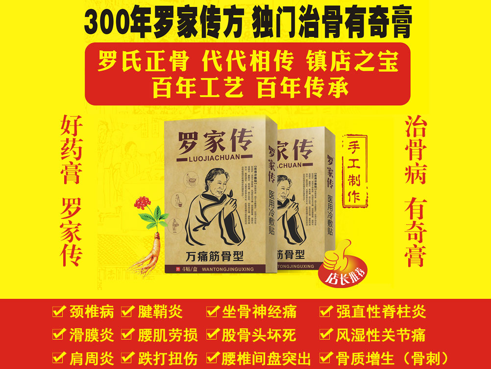 功能主治1、腰椎病、腰肌勞損、腰部扭傷、腰椎變形、腰椎骨質(zhì)增生、腰椎間盤突出、腰痛腿痛。2、頸椎病、頸椎間盤突出、頸椎骨質(zhì)增生、頸椎變形、鈣化、活動受限、脖子痛。3、風(fēng)濕、類風(fēng)濕、骨質(zhì)增生、肩周炎、痛風(fēng)、股骨頭缺血性無菌壞死、坐骨神經(jīng)痛、婦女產(chǎn)后腰腿痛。4、創(chuàng)傷、扭傷、跌打損傷、骨折、骨病疼痛。 |