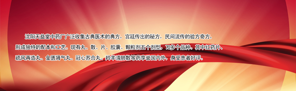 在近兩個世紀的漫長歲月里,沈陽天益堂中藥廠廣泛收集古典醫(yī)術(shù)的典方,**傳出的**,民間流傳的驗方奇方,形成獨特的配本和工藝,F(xiàn)有丸、散、片、膠囊、顆粒劑五個劑型,70多個品種。其中紅藥片、疏風(fēng)再造丸、金匱腎氣丸、冠心蘇合丸、羚羊清肺散等藥享譽國內(nèi)外,身受患者好評。