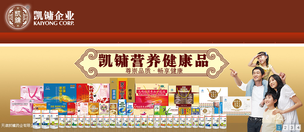 凱鏞企業(yè)(天津凱鏞藥業(yè)有限公司、天津凱鏞保健品有限公司)成立于1996年,是我國(guó)專(zhuān)業(yè)從事醫(yī)藥保健品科研、生產(chǎn)、銷(xiāo)售的高科技現(xiàn)代化企業(yè)。18年來(lái),凱鏞企業(yè)立足天津,切實(shí)以大眾健康為己任,堅(jiān)持創(chuàng)新,與時(shí)俱進(jìn),苦心經(jīng)營(yíng)。