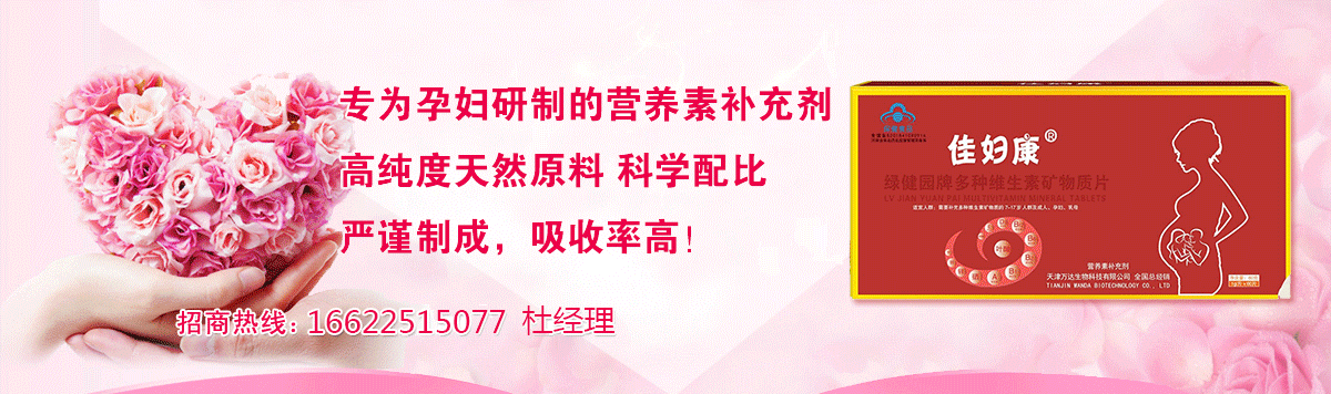 佳婦康,是天津萬達生物科技有限公司旗下專為中國孕婦和新生媽媽研發(fā)膳食營養(yǎng)補充劑的國際品牌,立足世界**科技的發(fā)展,傳承融合中外養(yǎng)生文化,以自主研發(fā)、自主品牌為主導,致力于健康科技與健康孕文化的傳播普及。通過對中國女性孕前孕中孕后的身體機能與營養(yǎng)需求、胎兒及嬰幼兒各個成長階段進行營養(yǎng)設計和潛心研究,針對孕婦**健康問題提供專業(yè)、**的營養(yǎng)管理方案。