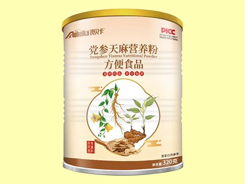 燕麥粉、乳味基料粉、聚葡萄糖、全脂乳粉、乳清蛋白粉黨參提取物(2%)、天麻提取物(1%)