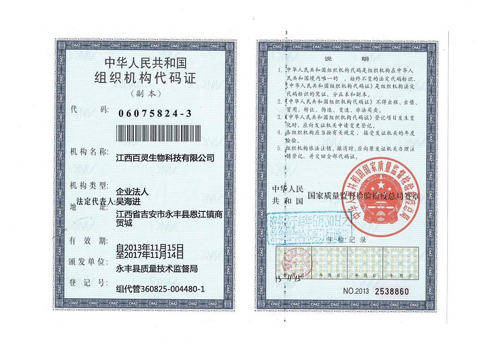 | 公司名稱:江西百靈生物科技有限公司 | |