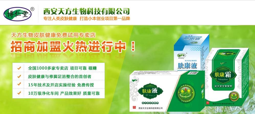天方生物推廣“膚康”系列產(chǎn)品的目的,就是要用最經(jīng)濟的價格,治好最頑固的皮膚頑癥。推廣‘皮膚健康免費試用專賣店’項目的目的,就是要用最小本的投資成本,幫助創(chuàng)業(yè)者贏得更廣泛的市場財富。西安天方生物科技有限公司的技術(shù)、產(chǎn)品療效、項目特色、招商政策,是贏得創(chuàng)業(yè)者青睞的優(yōu)勢所在!