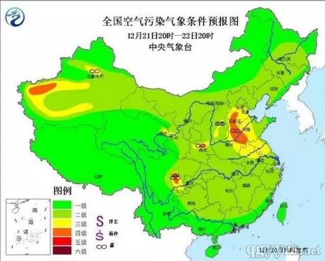 12月21日20時(shí)~22日20時(shí),受冷空氣影響,22日早晨起華北中南部、黃淮北部等地霾天氣將自北向南逐漸減弱或消散。圖片來源:中央氣象臺(tái)