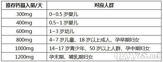 根據(jù)《中國(guó)居民膳食營(yíng)養(yǎng)素參考攝入量表》,不同人群每日推薦的鈣攝入量如下: