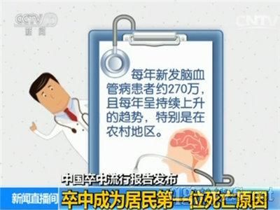 該則新聞的標(biāo)題是:中風(fēng)成中國居民第一死因,發(fā)病率高于世界平均水平。