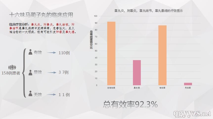 所以,產(chǎn)品具有清熱消腫,活血化瘀之功效。用于睪丸腫痛,腎炎引起的下肢腫痛,寒性腎病,亦可用于睪丸結(jié)核。