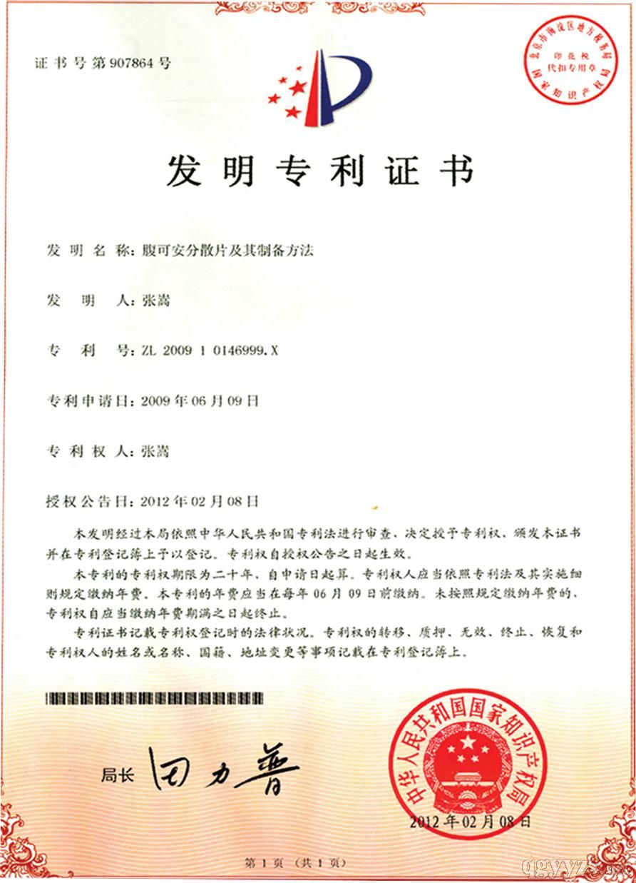 ◆純中藥制劑,獨(dú)家分散片劑型(專利號(hào):ZL200910146999.X)