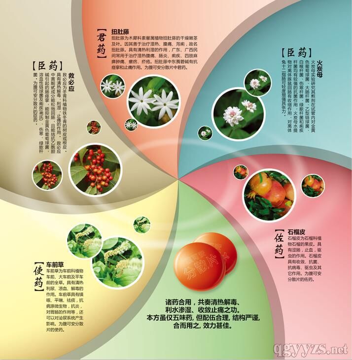 功能主治:清熱利濕、收斂、止痛。用于消化不良引起的腹痛、腹瀉、嘔吐、急慢性胃腸炎。