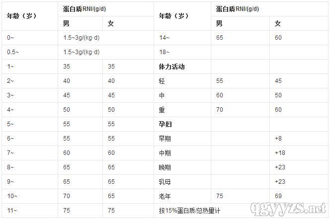 說到這里,蛋白質(zhì)對(duì)人體的重要性以及不言而喻了。2000年,中國(guó)營(yíng)養(yǎng)學(xué)會(huì)重新修訂了推薦的膳食營(yíng)養(yǎng)素?cái)z入量,新修訂的蛋白質(zhì)推薦攝入量如下: