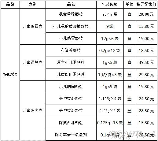 華旭達藥業(yè)好酷娃®產(chǎn)品目錄