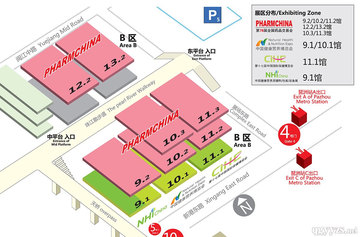 全國藥品交易會:9.2、10.2、11.2號館(二層展館,珠江散步道層)