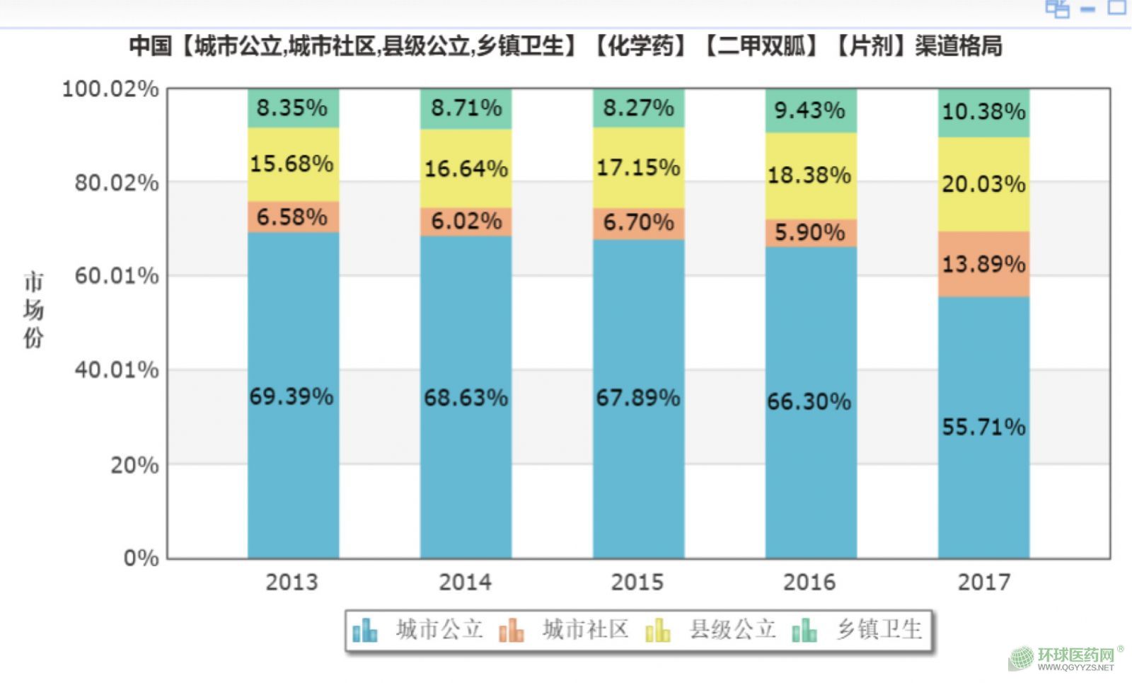 從二甲雙胍在各級(jí)醫(yī)院使用的情況看,其在基層醫(yī)療機(jī)構(gòu)的市場(chǎng)占比越來(lái)越大?梢,在分級(jí)診療的政策下,作為慢病的糖尿病病人,已經(jīng)明顯往基層下沉。