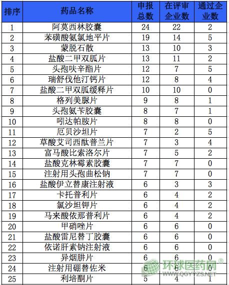 據(jù)米內(nèi)網(wǎng)數(shù)據(jù)庫(kù)統(tǒng)計(jì),目前一致性評(píng)價(jià)申報(bào)人氣最高的品種為阿莫西林膠囊,其次是苯磺酸氨氯地平片、蒙脫石散、鹽酸二甲雙胍片、頭孢呋辛酯片、瑞舒伐他汀鈣片等,都是市場(chǎng)的大品種。
