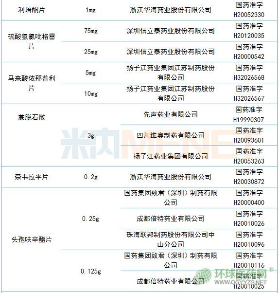 揚(yáng)子江集團(tuán)(含4家子公司)有5個(gè),包括了:格列美脲片(2mg)、馬來酸依那普利片(5mg、10mg)、苯磺酸氨氯地平片(5mg)、蒙脫石散(3g)。