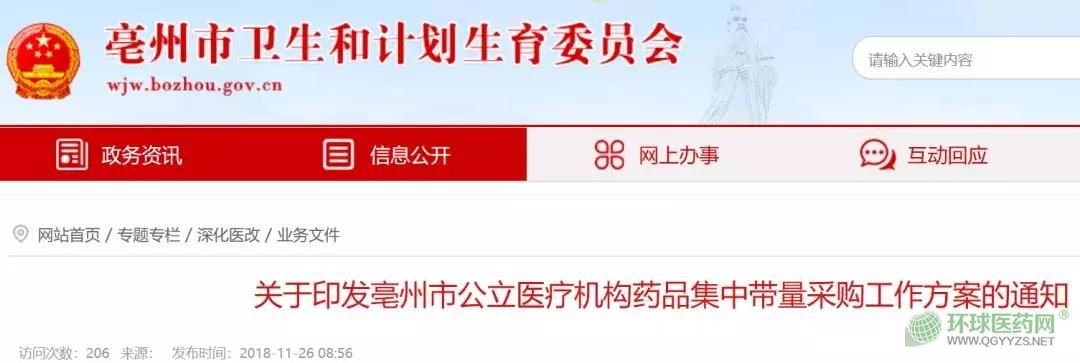 11月26日,安徽亳州市深化醫(yī)改組、亳州市衛(wèi)計委等五部門聯(lián)合印發(fā)《關(guān)于印發(fā)亳州市公立醫(yī)療機構(gòu)藥品集中帶量采購工作方案的通知》(以下簡稱《通知》)。