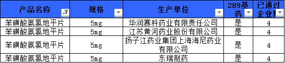 其中,東瑞制藥的苯磺酸氨氯地平片是該品規(guī)第四家通過一致性評價的產(chǎn)品。