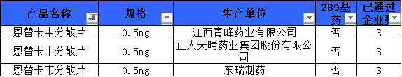 而恩替卡韋分散片是該品規(guī)國內(nèi)第三家通過一致性評價的產(chǎn)品。