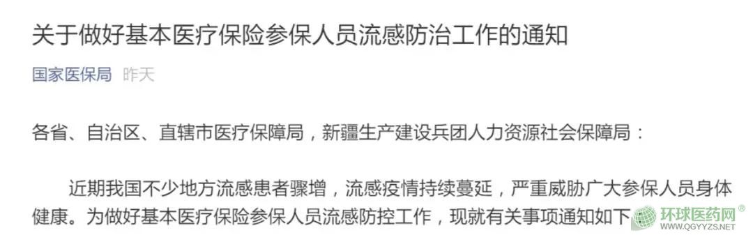 《通知》提到,近期我國(guó)不少地方流感患者驟增,流感疫情持續(xù)蔓延,嚴(yán)重威脅廣大參保人員身體健康。