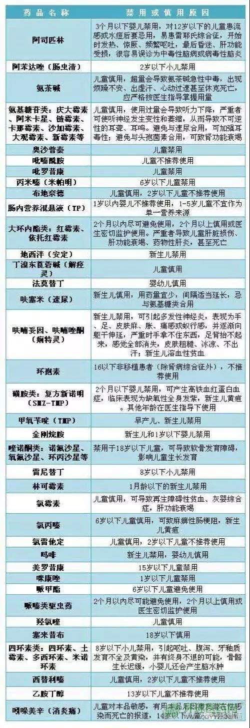 此外,以下藥物也在兒童禁用或慎用的名單之中: