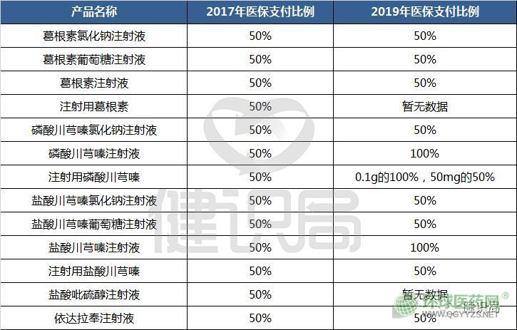 福建醫(yī)保支付價中,2017年將此類藥品定義為萬能輔助用藥,醫(yī)保報銷限制在50%。2019年筆者查詢的磷酸川芎嗪和鹽酸川芎嗪的醫(yī)保報銷比例不一。