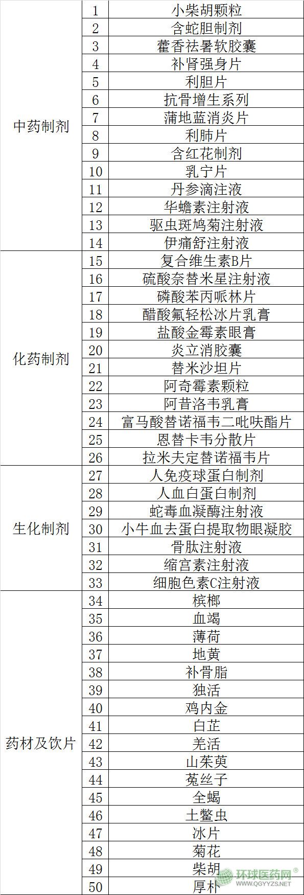 50個藥品,被重點監(jiān)管,14種中藥制劑,12種化藥制劑,7種生化制劑,17種藥材及飲片。