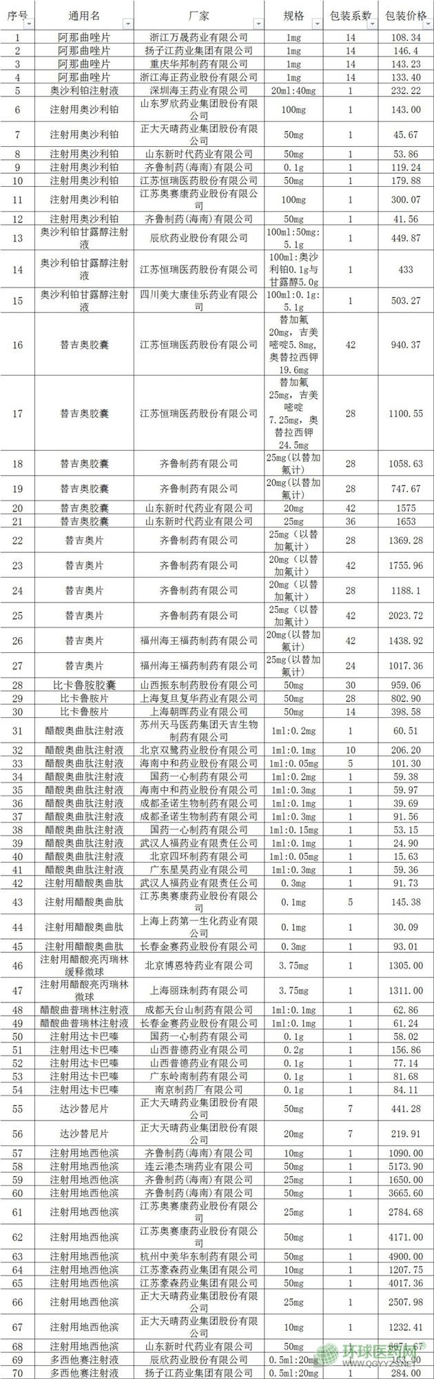 《通知》將抗癌藥物降價處理結(jié)果公示如下:國家醫(yī)保局《103個降稅藥品的未降價抗癌藥(13個)品種》中共涉及8個品種、現(xiàn)有1個品種提交降價申請、1個品種提交未享受稅率減免的審計證明,其他6個品種未提交材料。