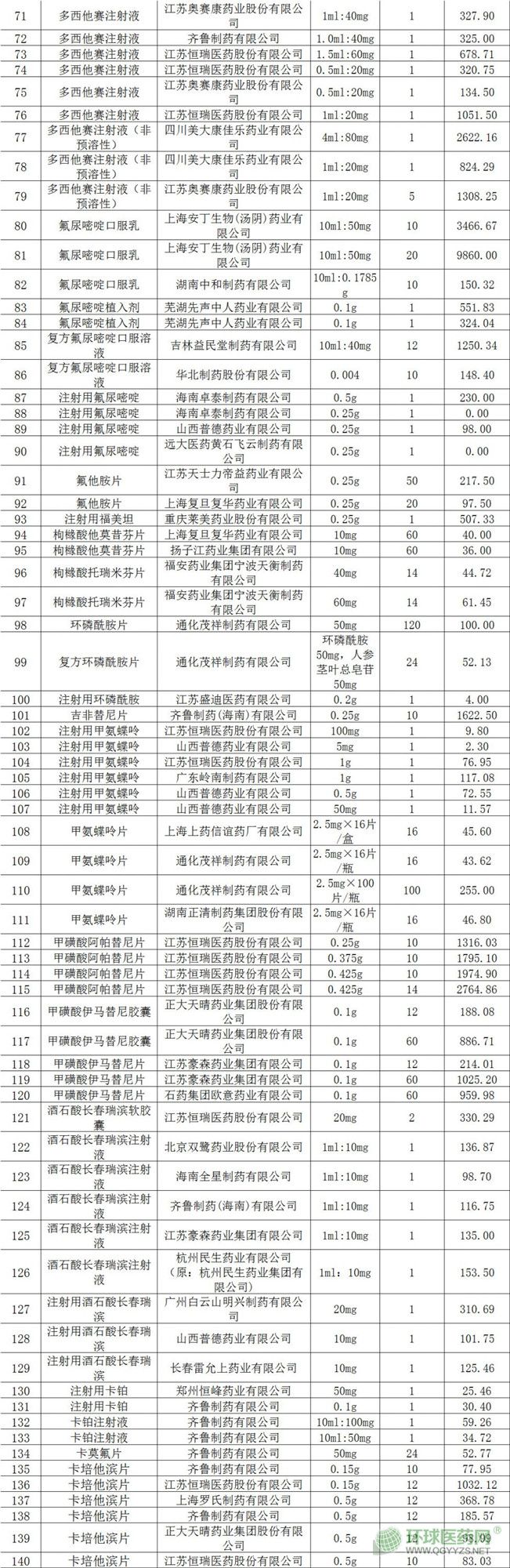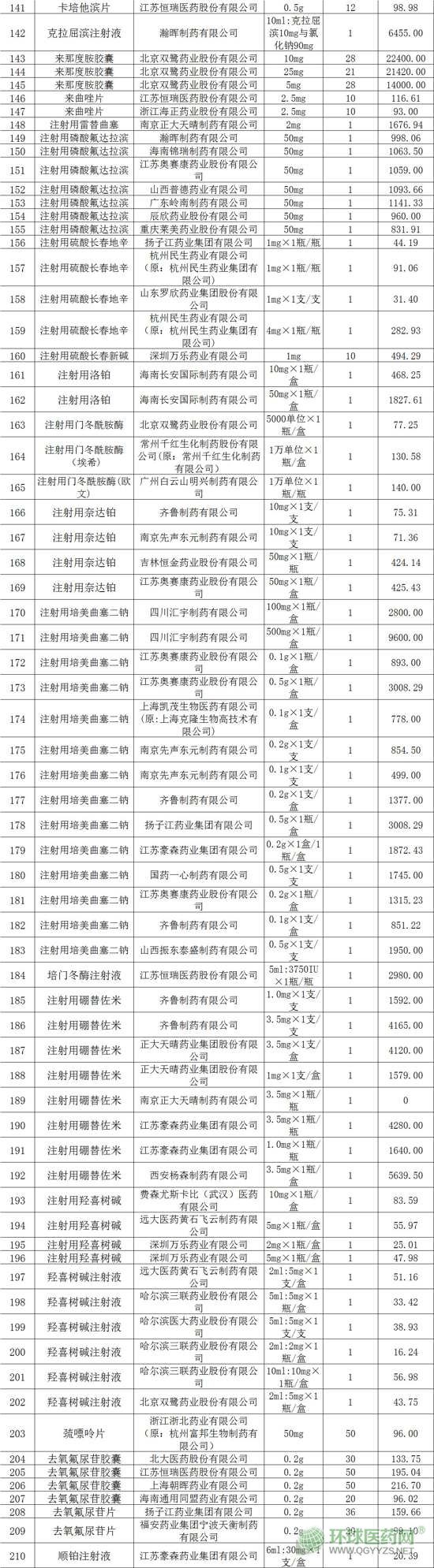 附:已參與黑龍江省藥品集中采購、未主動降價的國產(chǎn)抗癌藥品清單