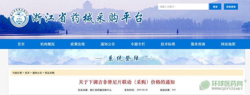 2月18日,浙江省藥械采購平臺發(fā)布通知,下調(diào)吉非替尼片聯(lián)動(采購)價格的通知,齊魯制藥(海南)有限公司主動申請下調(diào)其通過仿制藥一致性評價產(chǎn)品吉非替尼片在我省掛網(wǎng)采購的價格。經(jīng)研究,同意企業(yè)的降價申請,價格調(diào)整3月1日起執(zhí)行。