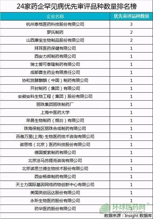 Insight 數(shù)據庫收錄了優(yōu)先審評 28 個批次的 521 個受理號,其中以罕見病為由納入優(yōu)先審評的有 42 個,有 24 家企業(yè)已提前布局。臨床 CRO 龍頭泰格醫(yī)藥公司代理了 3 個罕見病優(yōu)先審評品種,分別是 Inebilizumab 注射液、Ataluren 口服混懸液顆粒和依庫珠單抗注射液。目前,已經進入優(yōu)先審批的罕見病品種有 18 個。