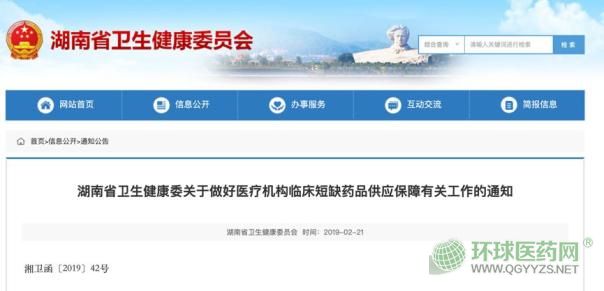 2月21日,湖南省衛(wèi)生健康委發(fā)布文件,要求做好短缺藥品供應(yīng)保障有關(guān)工作。