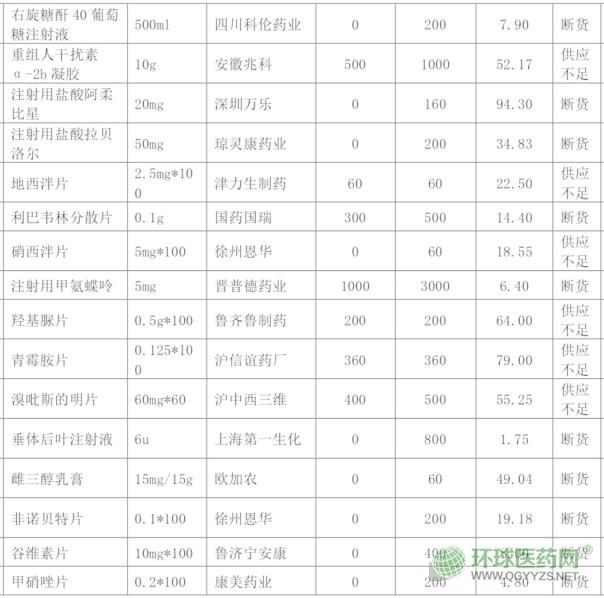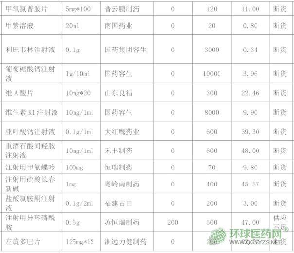 文件顯示,42個(gè)品規(guī)的藥品中,有34個(gè)藥品斷貨:利巴韋林分散片、鹽酸布比卡因注射液、注射用甲氨蝶呤……8個(gè)藥品供應(yīng)不足,有24個(gè)產(chǎn)品暫無替代藥品,16個(gè)藥品可以用相同通用名藥品替代,2個(gè)藥品可以用功效相同或相近的不同通用名藥品替代,2個(gè)藥品有替代。