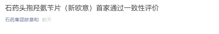 日前,石藥集團歐意藥業(yè)通過起微信公眾號宣布:頭孢羥氨芐片0.5g(新歐意)首家通過仿制藥質(zhì)量和療效一致性評價。